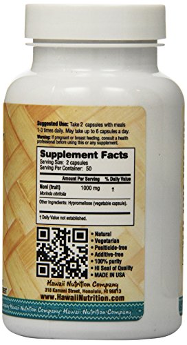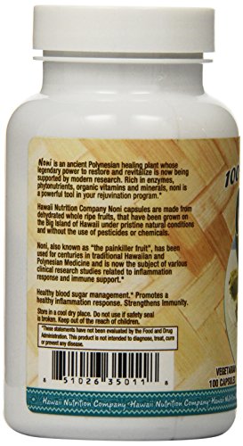 -. Binding : Health and Beauty -. Brand : Hawaii Nutrition Company -. Label : Hawaii Nutrition Company -. Manufacturer : Hawaii Nutrition Company -. ProductGroup : Health and Beauty -. ProductTypeName : HEALTH_PERSONAL_CARE -. Publisher : Hawaii Nutrition Company -. Studio : Hawaii Nutrition Company -. Title : Hawaii Nutrition Company Hawaiian Noni Capsules