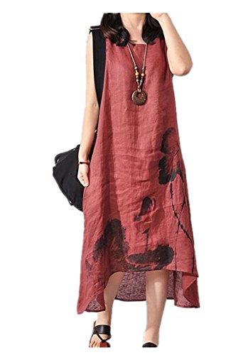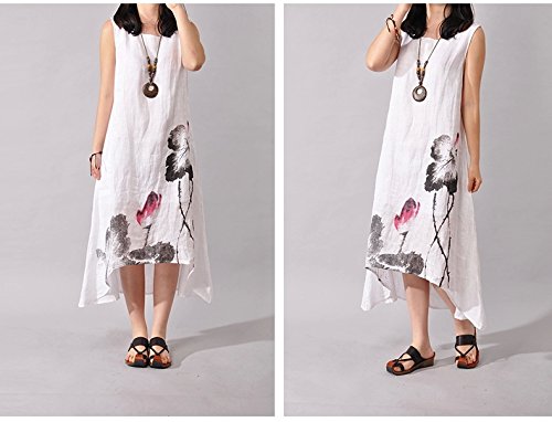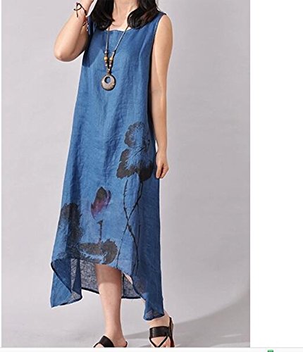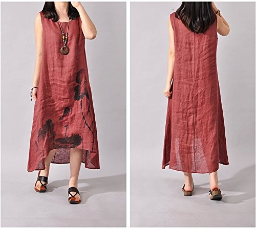 -. Feature : Asia size: The Asian size is smaller than US/AU/UK size, please kindly choose size fits you well, Please understand 1-3 cm measurement errors is reasonable due to different measure way / The real color of the item may be slightly different from the pictures shown on website / Featuring: Ink painting print, Round neckline, Sleeveless, Irregular hem and Loose fit / Cotton linen material, comfortable to wear / Please refer to the last image for size chart