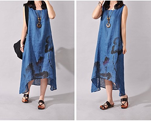 -. Title : Enlishop Women's Sleeveless Ink Print Irregular Cotton Linen Long Maxi Dress
