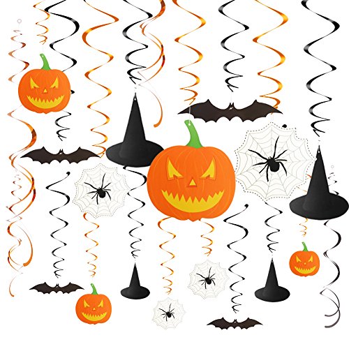 30 Piece Halloween Swirl Ceiling Hanging Decorations,Features with Pumpkin Witch Hat Bat Cobweb Halloween Party Supplies
