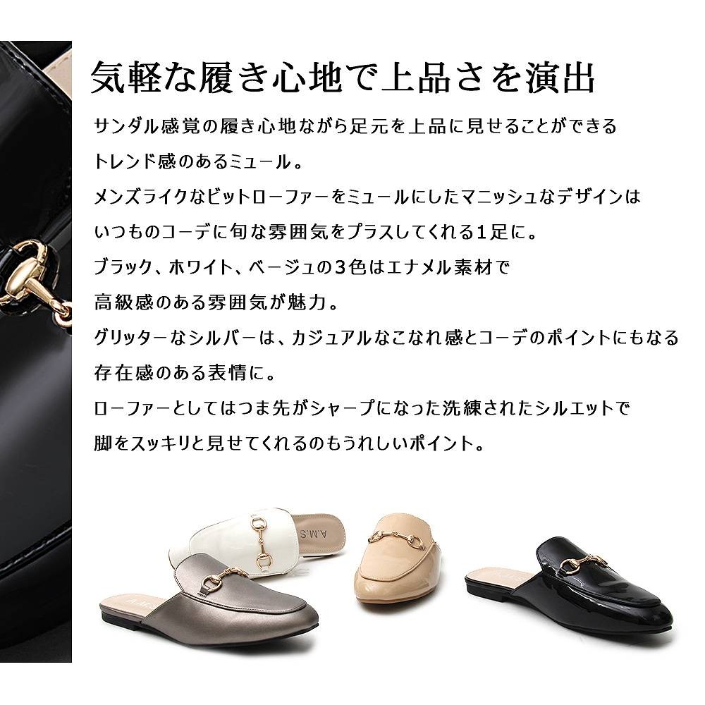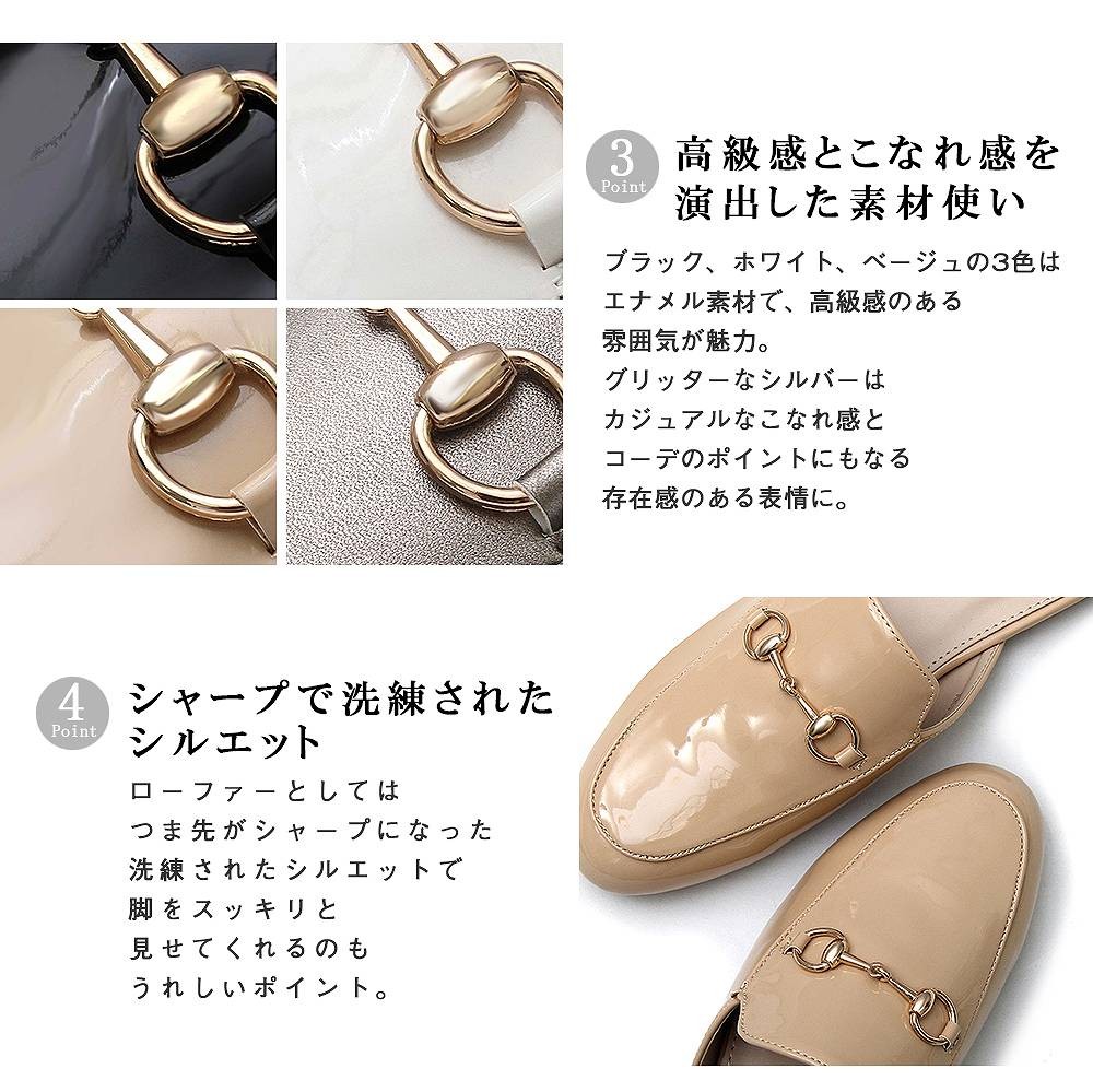 | 商品説明 | "気軽な履き心地で上品さを演出" サンダル感覚の履き心地ながら足元を上品に見せることができる、トレンド感のあるミュール。 メンズライクなビットローファーをミュールにしたマニッシュなデザインは いつものコーデに旬な雰囲気をプラスしてくれる1足に。 ブラック、ホワイト、ベージュの3色はエナメル素材で、高級感のある雰囲気が魅力。 グリッターなシルバーは、カジュアルなこなれ感とコーデのポイントにもなる存在感のある表情に。 ローファーとしてはつま先がシャープになった洗練されたシルエットで、 脚をスッキリと見せてくれるのもうれしいポイント。 |