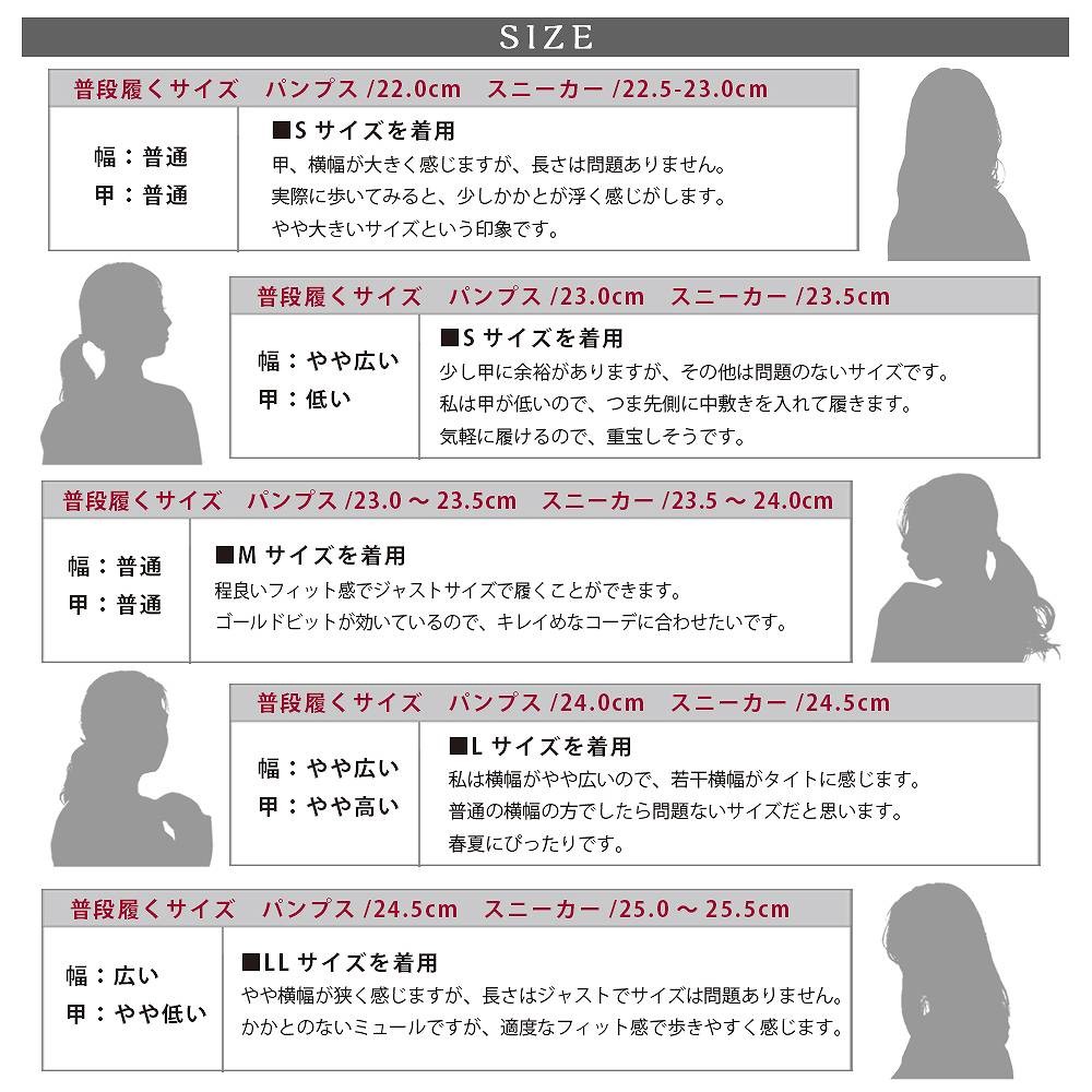 | サイズ(約:cm) | S (23.0cm-23.5cm) M (23.5cm-24.0cm) L (24.0cm-24.5cm) LL(24.5cm-25.0cm) |