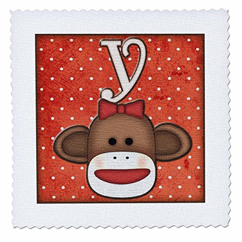 3dRose qs_102828_2 Cute Sock Monkey Girl Initial Letter Y-Quilt Square, 6 by 6-Inch