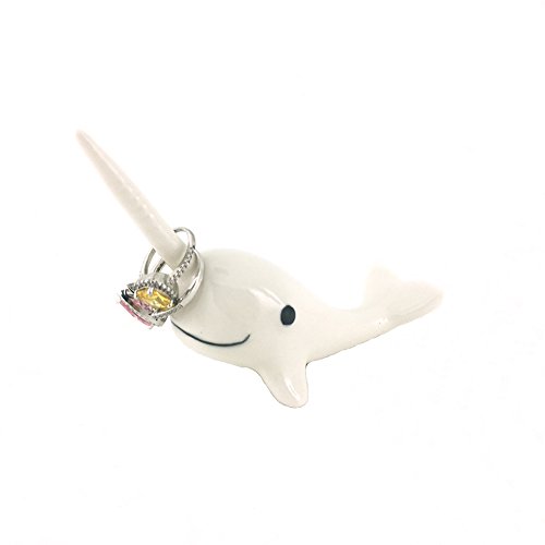 Adorable Ceramic Narwhal Ring Holder,Engagement Ring and Wedding Ring Display Holder Stand