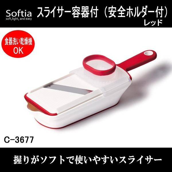 材料がぶれず、スムーズにスライスができるガード付き。容器はマイナス3度で力の入れやすい傾斜角度です。滑りにくくしっかり固定、たっぷりスライスができる容器です。 |