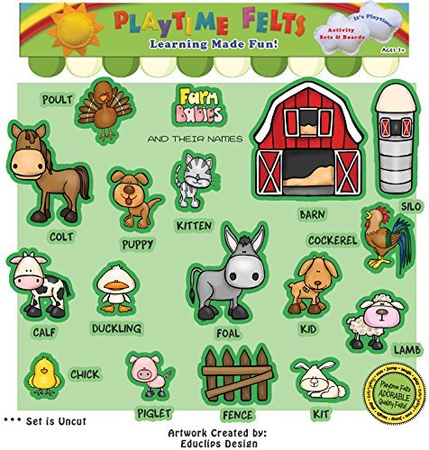 PLAYTIME FELTS FARM BABIES AND THEIR NAMES - FUN FLANNEL BOARD STORY SET WITH 32 PIECES AND STORY SCRIPT
