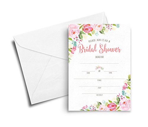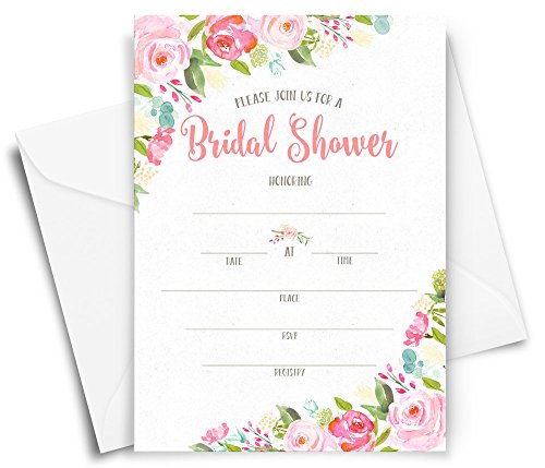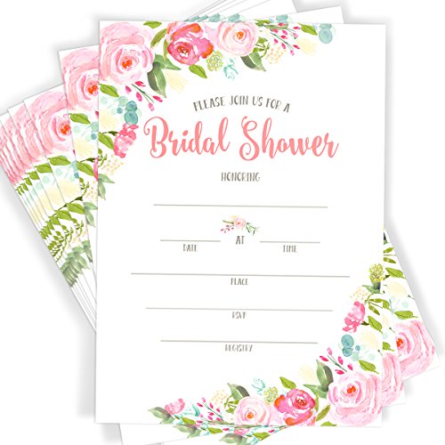 Floral Watercolor Bridal Shower Invitations | 40 Invitations with Envelopes