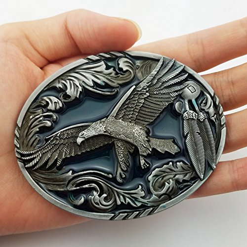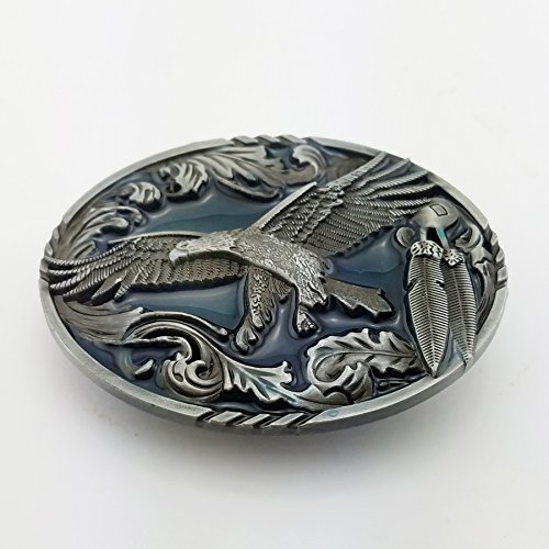 (Lanxy)/Accessories/Belts Buckles/DIRECT FROM USA/Lanxy American Western Cowboy Eagle Leaf Oval Belt Buckle Blue Enamel Silver Tone