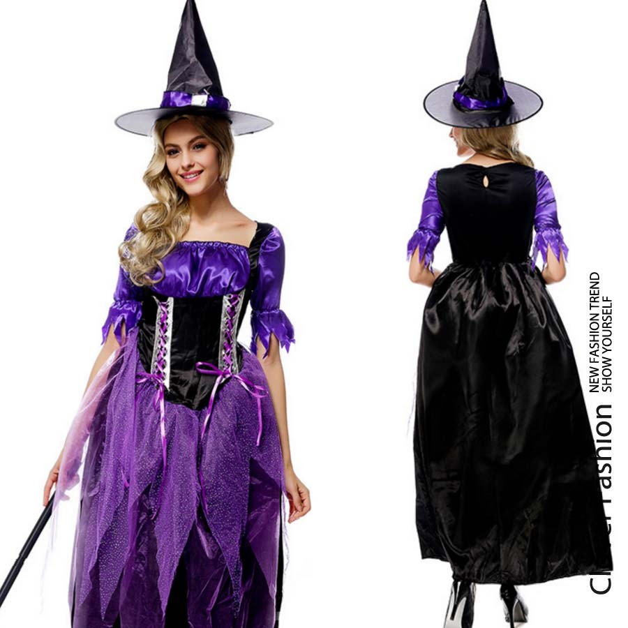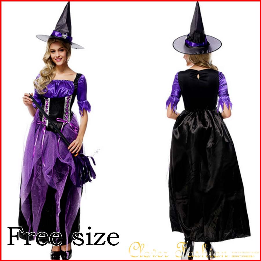 ハロウィン 悪魔 デビル 魔女 小魔女 デビル コスチューム コスプレ衣装 女王 QUEEN クィーン ロングドレス 仮装 舞台 ダンス ステージ パーティー コスプレ衣装 イベント パーティ コスプレ衣装 学際 学校祭 学園祭 パープル 紫 魔女 魔法使い 魔法師 巫女 メール便不可