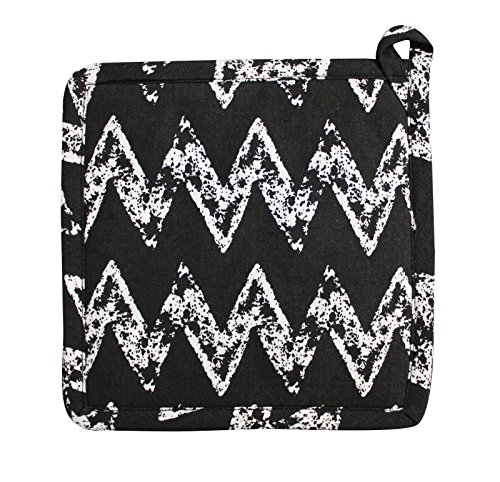 Airwill 100% Cotton, Pot Holder Gift Set - Set of 2 - 8 x 8", Heat Resistant, Machine Washable, Superior Protection & Comfort–Elegant Design for Everyday Kitchen Basic - Black[Zig Zag]