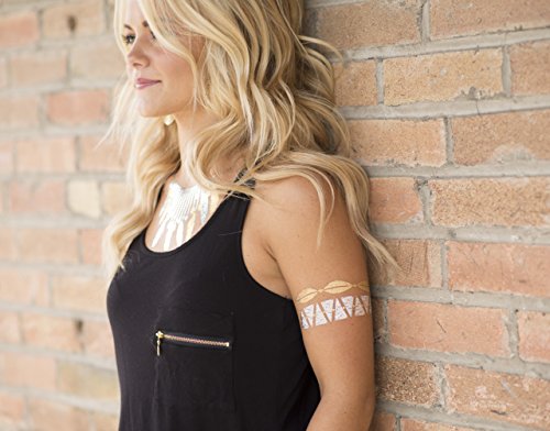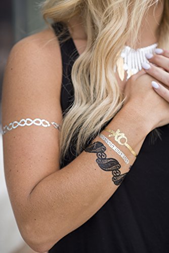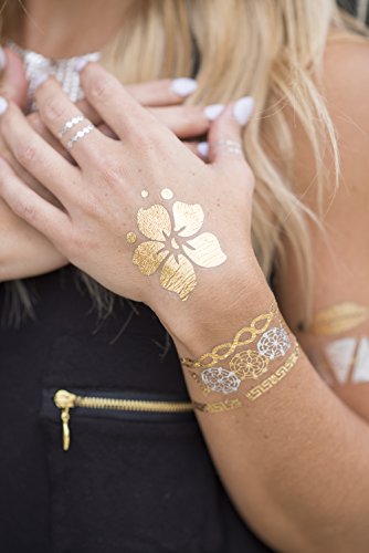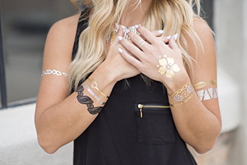 -. Feature : CELEBRITY INSPIRED: 6 Premium Sheets of trendy metallic gold and silver temporary tattoos / METALLIC JEWELRY: Trendy bracelets and necklaces / WATERPROOF: Look cute all day no matter where you are / STYLISH: The hottest trendsetting temporary tattoos / APPLY IN 45 SECONDS: Very easy to apply and simple to remove