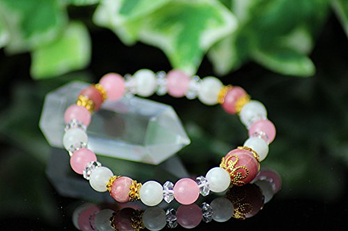 【경 주당】AAA 잉카 로즈×핑크 비취×moonstone 8mm 천연석 팔찌