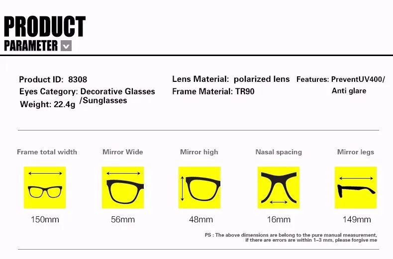 Lens Colors: Gray,Ice Blue,Mercury,100% HD Polaroidd Lens,Better To Modified Face