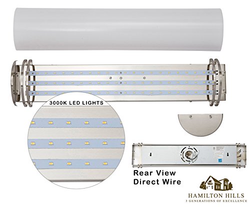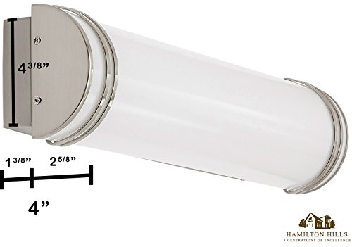 SOPHISTICATED DESIGN: Clean modern design with beautiful angles and a simple feel. Brushed nickel finishes with a glass free frosted sconce for even light distribution with exceptional color accuracy. 3000K LED lights offering a warm feel unlike the harsh fluorescent white-light alternatives. LED annual energy savings.