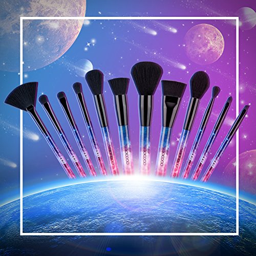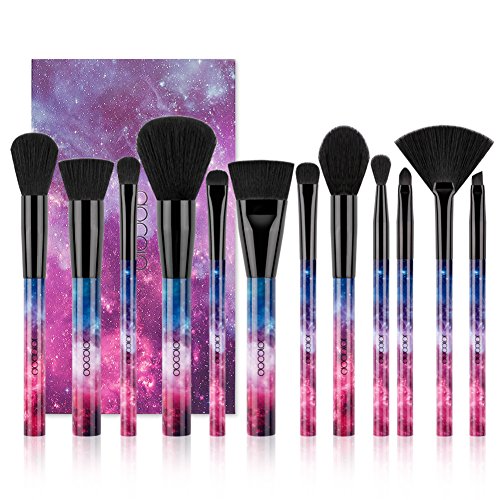 Docolor 12Pcs Galaxy Stars Makeup Brush Set Professional Face Blending Eyeshadow Fan Brush Kits