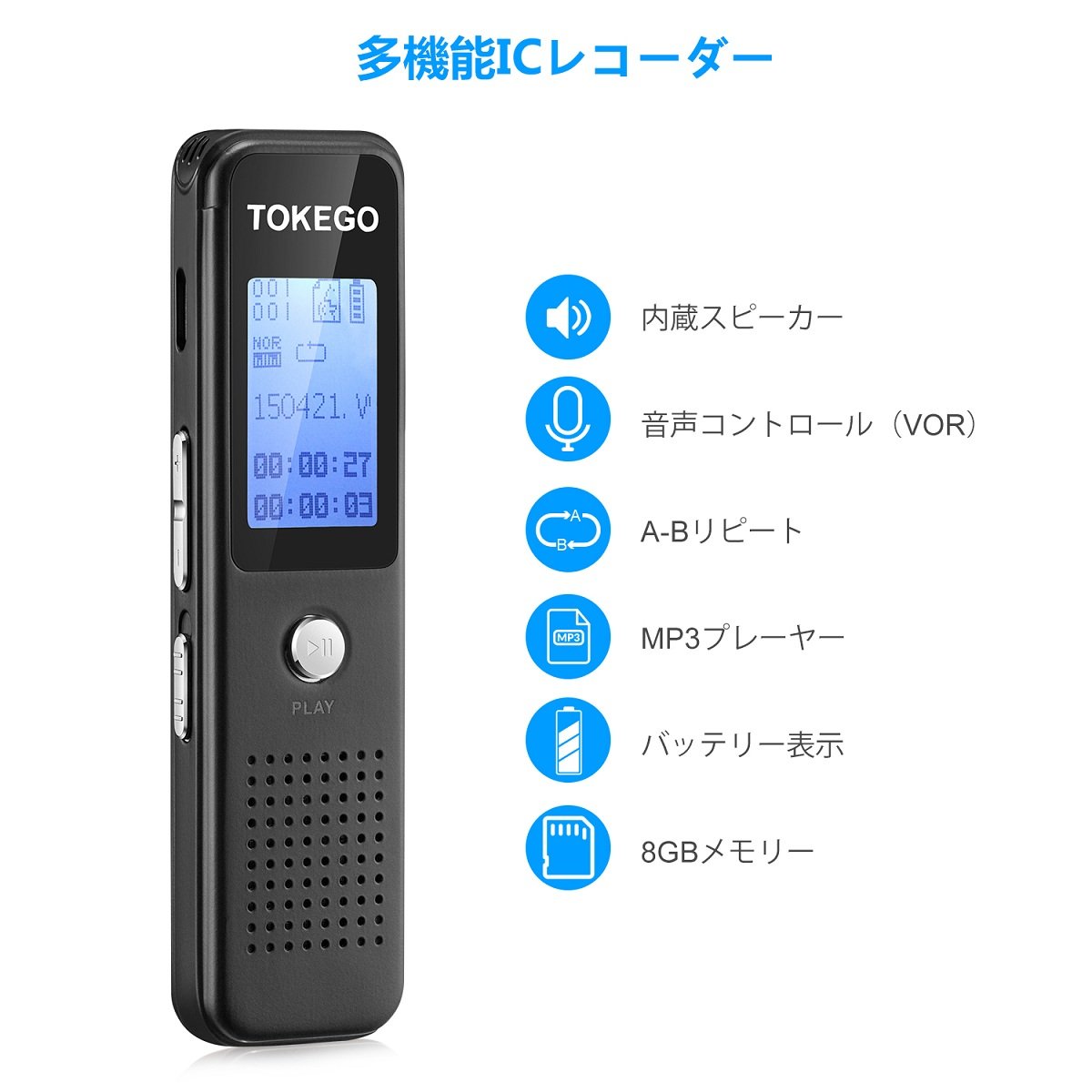 TOKEGO IC Recorder 8 GB Large Capacity Voice Recorder Compact Voice Recorder with Built-in Music Player (Built-in Speaker with High Quality Japanese Instructions)