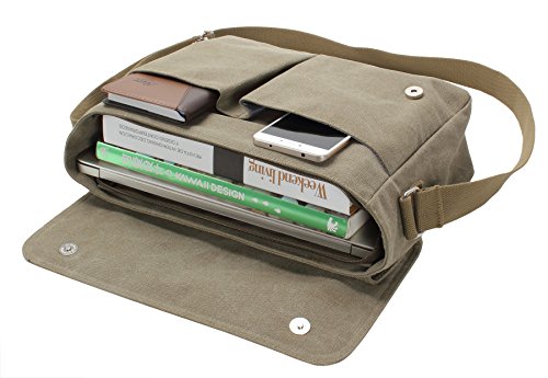 -. Feature : Material ▶ Made of high density cotton canvas, it is skin-friendly and without any stimulation, get more comfort when carry it; Quality hardware ensure long lasting durability. / Large Capacity ▶ Normal size-13.77 x 10.23 x 4.72 inches(L*H*W) / 35*26*12 cm (L*H*W); Weight: 1.43lb / 0.65kg. The main compartment can fit 13.3" laptop, ipad or books. 1 zipper hidden pocket and 1 back pocket to ensure safety of your valuables and 2 front pocket to place smartphone, ID card, passport, note book, pen. Speacial zipper pocket on the flap. / Adjustable shoulder strap ▶ The messenger bag features a wide adjustable shoulder strap, and stable buckle for easy and comfortable carry. With hook-and-loop fastener outside, you can open and close the bag easily. Snap fasteners for 2 exterior small pockets that get more safety. / USAGE ▶ Neither too small nor too large, suitable for Teenager Boys and Men for School,Travel, Work; Can be used ss School Bags, Laptop Messager Bag,Business Bag, Daily Satchel, Weekend Bag, Holiday Travel Pack. / Warranty ▶ When the bag have any quality problem, please contact us and our customer service team will always standby here to assist you. Like we can give you a replace one or other way.