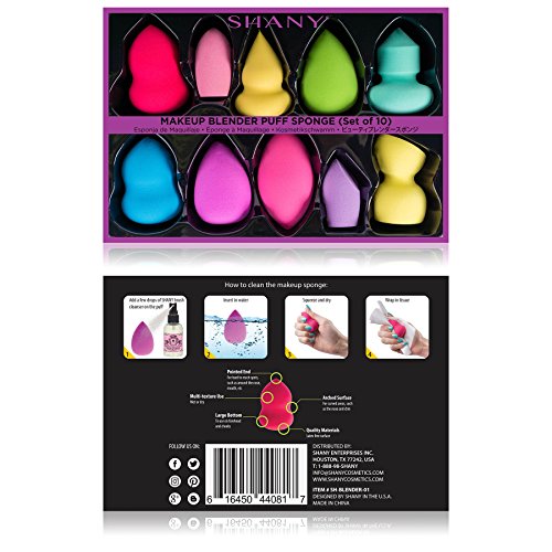 SHANY Makeup Premium Beauty Sponge Blender Puff Set - Latex-free & Vegan , Multipurpose Shapes & Colors - Set of 10