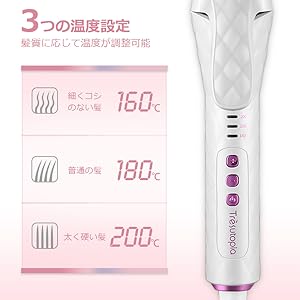 160度(細く、コシのない髪)、180度(標準的な髪)、200度(硬く、太い髪)でご使用いただけます。