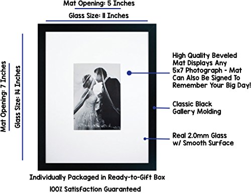 - PERFECT SIGNATURE MAT FOR WEDDINGS OR CELEBRATIONS: This frame features two different photo sizes - 11x14 inches without the mat or 5x7 inches with the white colored mat. The large mat will look elegant right out of the box, or can be signed by guests at a wedding, family reunion, or graduation party and will be a great memory for years to come!