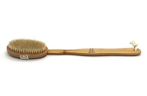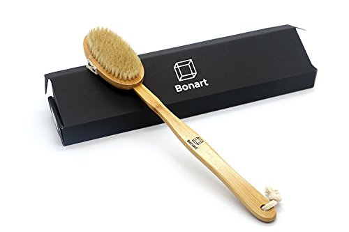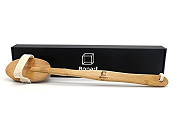 BonartGroup 16-Inch Long Bamboo Bath Body Back Scrubber Brush with Natural Boar Bristles and Detachable Handle