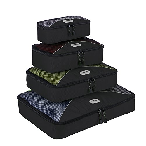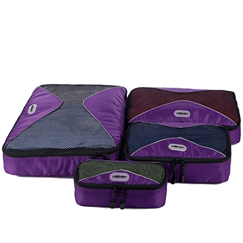 -. Feature : STRONG & LIGHT: Ultra lightweight rip-stop nylon with YKK Zippers.DURABLE reinforced seams. No broken zippers, snagged clothing or weak stitching.Mesh Tops for Breathability and Visibility. / ORGANIZE and COMPRESS your clothes.These packing squares enable you to fit more into your lage and arrive with wrinkle free clothes. Each cube enables you to sort clothes by outfit or garment type. / PERFECT FIT - This 4 pieces set fits like a glove into most airline carry-on suitcases, tote, weekender, backpacks and duffel bags. Great way to keep organized for family breaks, business travel, camping, hiking and so on. / 4 sizes range: Xsmall(9 x 3.9 x 3.1 inches),Small(11 x 6.9 x3.1 inches),Medium(13.8 x 9.8 x 3.1 inches),Large(17.5 x 12.8 x 3.3 inches). 5 colors:black,orange,green,blue and purple. Each packing cube comes with a webbing handle for easy grabbing, carrying separately, or hanging. / Warranty: Our Promise-Lifetime Warranty-Exchange, return, whatever it takes. To ensure the quality, please pay attention that this item ONLY fulfilled by Amazon and seller "HEXIN".
