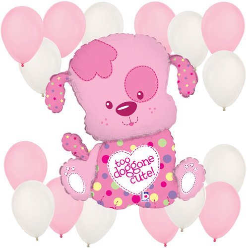 -. Feature : Girl Puppy Balloon Kit includes: / 33" puppy girl shaped mylar balloon / 16 Pack of 11" latex Balloons - (8 Pink & 8 White) / Balloons will arrive flat.