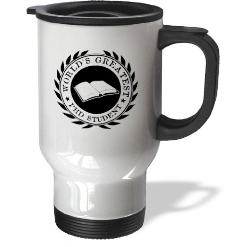 3dRose tm_165002_1 Worlds Greatest Phd Student Scholar Pride Black White Badge Graphic Travel Mug, 14-Ounce, Stainless Steel