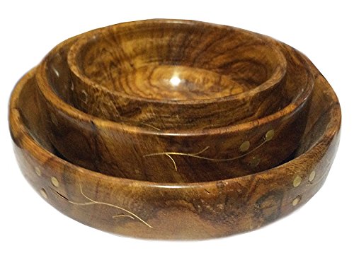 Christmas or Thanks Giving Day Gift, Handmade Wooden bowl Set of 3 Serving Bowl, Soup Bowl with Brass Inlaid, Great for Serving, Pasta, Fruits, Snacks, Soup at Home