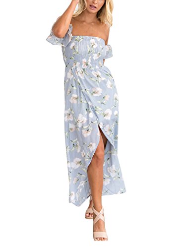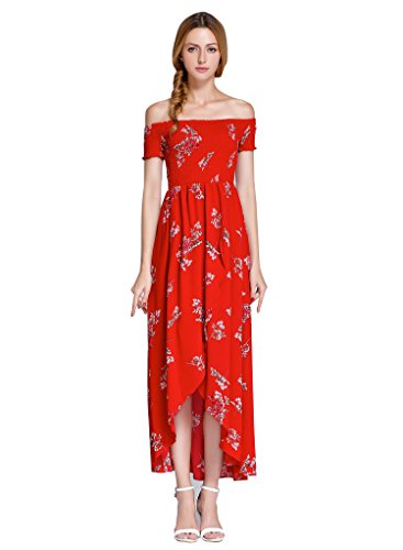 High Waist, Floral Print, Vintage, Cold Shoulder, Split Dress