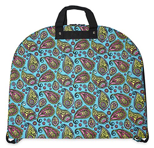 Product Description Take your dress clothes with you confidently on vacation with this stylish garment bag! This piece of lightweight luggage is great for jet setters and can be used for a quick, close by staycation or for a weekend excursion to your favorite retreat. Made out of durable 600 Denier Polyester fabric in a chic print. This garment bag folds in half and can be hung by its metal hook. The interior of this bag features multiple zipper pockets to hold shoes and accessories. Perfect for transporting cheer uniforms or theatre costumes to and from while keeping them clean and wrinkle free! Organize your closet and keep delicate, high quality items neat and pristine. 0