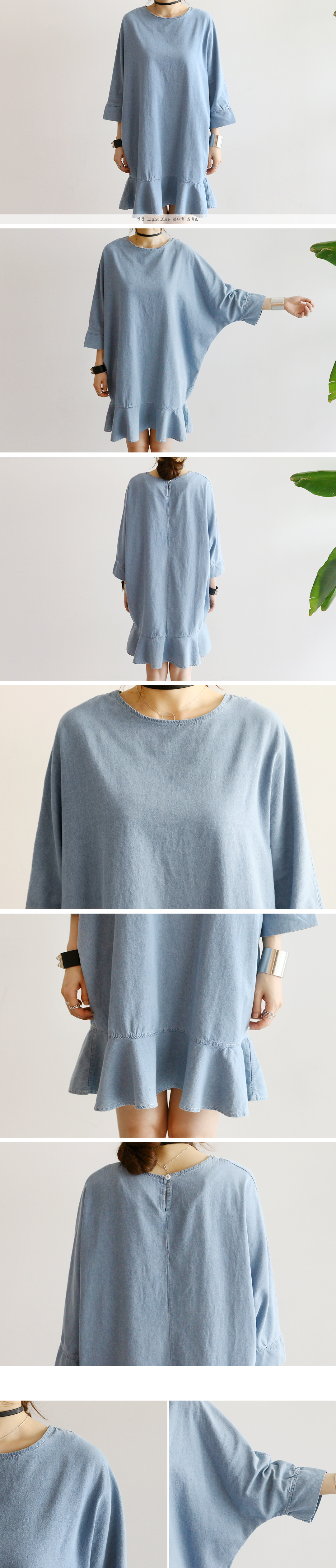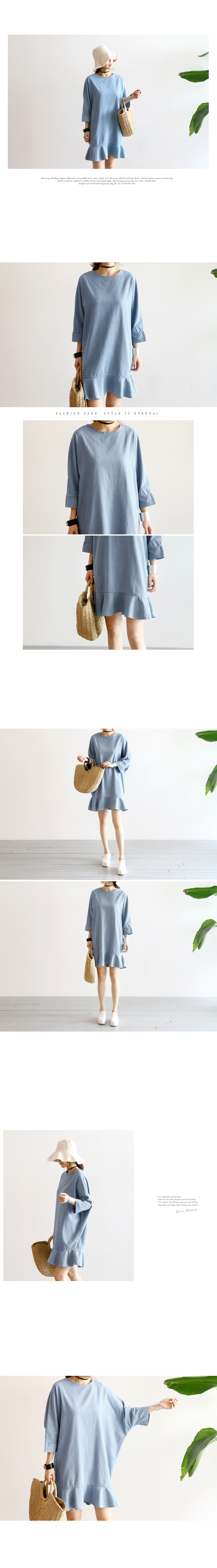 부담없이 데일리로 즐기기 좋은 스타일의 원피스고요, 밑단 러플장식으로 사랑스러운