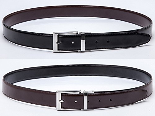 -. Title : Men’s Dress Belt Genuine Leather Reversible Buckle with 1.25’’ Wide Strap - Black/Brown