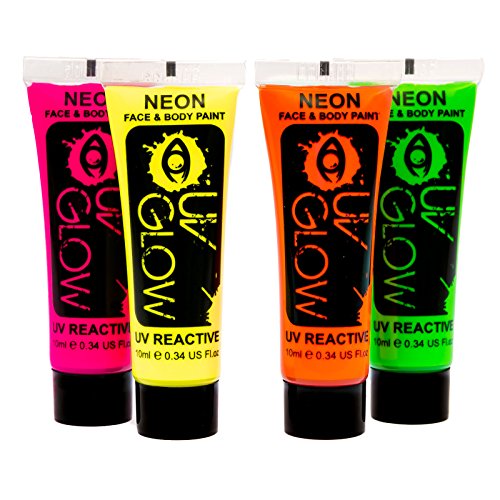 -. Title : Uv Glow Blacklight Face and Body Paint 0.34oz - Set of 4 Tubes - Neon Fluorescent