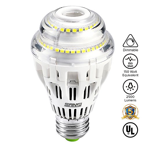 [UPGRADE] 17W (150 Watt Equivalent) A19 Dimmable LED Light Bulb, 2500 Lumens, 6500K Cool White, 270° Omni-directional, E26 Medium Base Floodlight Bulb, UL Listed, 5-year Warranty, SANSI