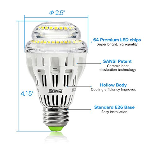 - SANSI Patent: Sansi ceramic heat dissipation technology along with the hollow-out structure and imported high quality led chips greatly improved cooling efficiency, prolonging the lifespan of the LED bulbs.