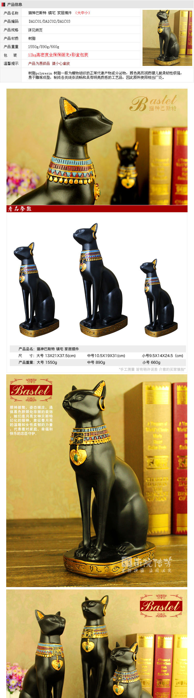 欧式复古创意埃及猫神装饰品酒柜树脂工艺品新房时尚家居摆件幇