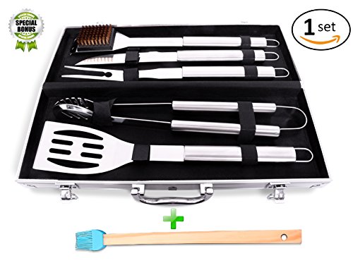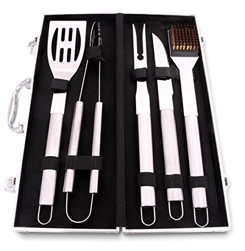 BBQ Tool Set Stainless Steel 5-Piece with Case-Length of tools 16.5 inches - large long size. The added Bonus of plus one Tool. Great for the Gift!