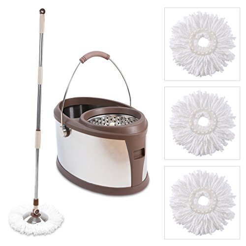 - USER-FRIENDLY: easy-grip metal handle facilitates lifting and emptying; 3 microfiber mop heads for replacement; with a non-slip pad, the balanced weighted bucket base holds it in place, reducing tipping over and won't scratch your floor