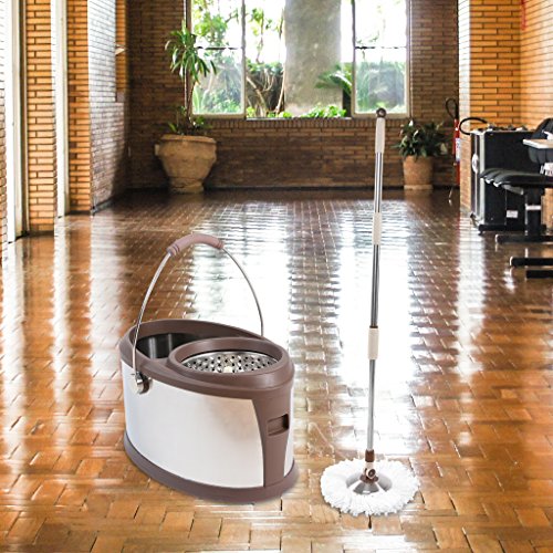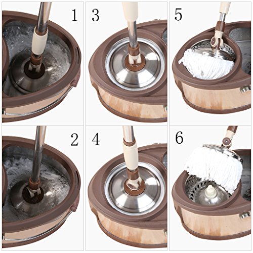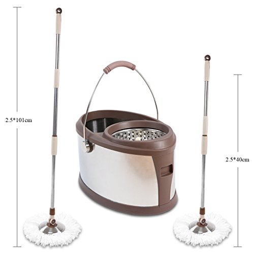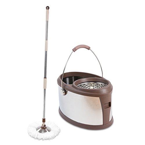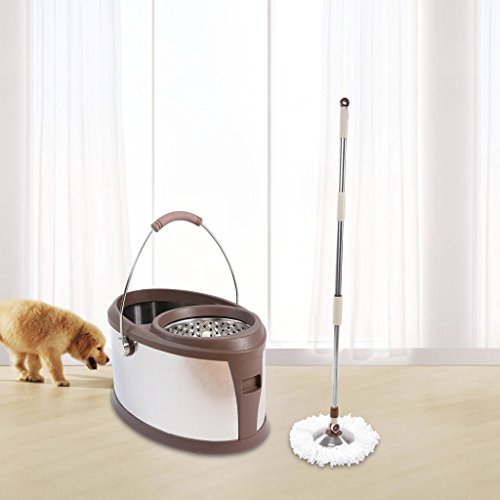 - CAPABLE OF STANDING WEAR – It is 10 times durabler than plastic.TAKE THE MESS OUT WITHOUT A SPLASH: funnel-type press wringer and a swivel mop head allow hands-free wringing via a simple press without splash; 3 slim outlets enable splashing-free emptying without lifting