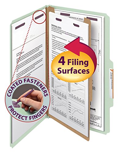 -. Feature : Protect your documents and fingers with Smead's patented SafeSHIELD® Coated Fastener Technology / Heavy duty pressboard stock and Tyvek® gusset for extra durability / The ultimate classification folder when security and safety are most important / Perfect for bulky files that get plenty of use / Expands up to 2" for greater storage capacity / Contains 60% recycled content, 30% post-consumer material