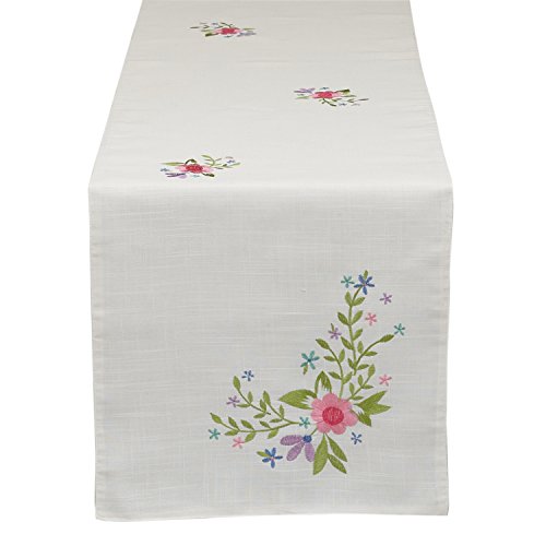 DII Embroidered Spring Flowers Table Runner