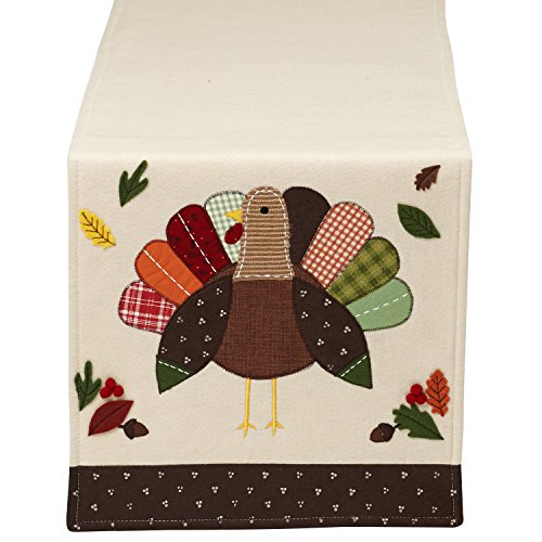 DII Thanksgiving Holiday Embroidered Table Runner 14 x 64", Turkey