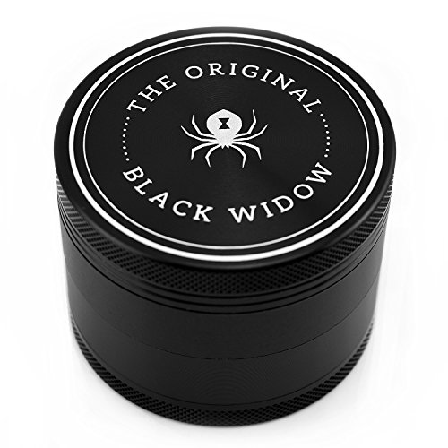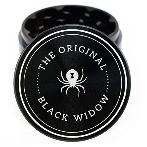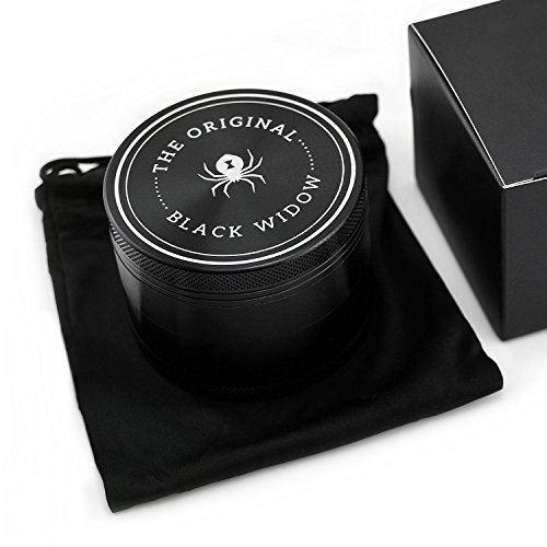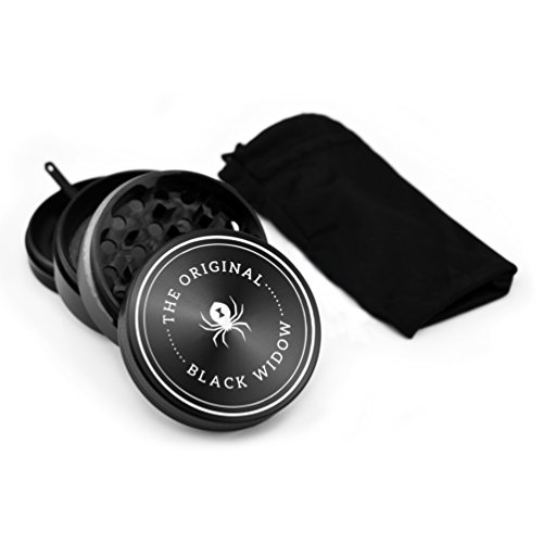 Black Widow Premium Herb Grinder 4 Piece Aluminum Large 2.5 inch Grinder with Travel Pouch (black)