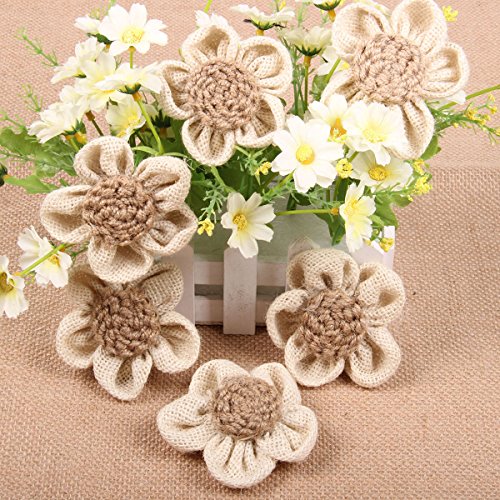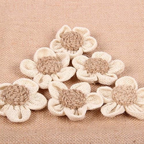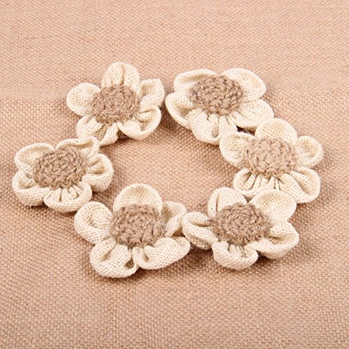 PIXNOR 6pcs Burlap Flower Vintage Wedding Decoration Flower Embellishment White Petal