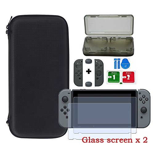 -. Feature : ✅1*Nintendo Switch Carrying Case,1*Cleaning Cloth, 2*Screen Protector, 2*Control Case, 2*Control caps, 1*soft card ; / ✅Protect your Nintendo Switch in our Unique Stylish Black Carrying Case! / ✅You can travel with your charger in the mesh pocket within the carrying case / ✅Includes all you need for your Nintendo SWITCH in one box / ✅Works with:Nintendo Switch