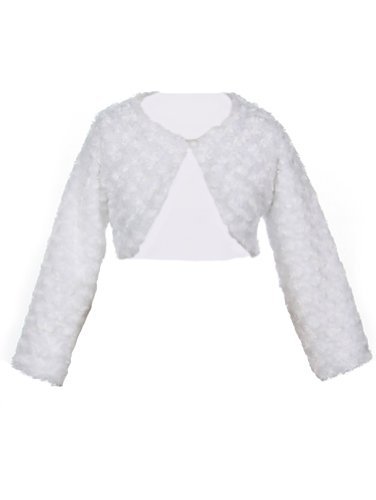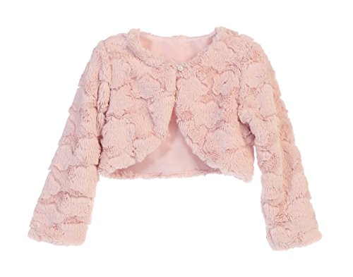 This Faux Fur Bolero Jacket is SUPER soft and has a Swirl pattern or a Cloud pattern. This warm dress accessory is long sleeved, high waisted length and fully lined. There is a single front pearlized button closure for simplicity and a feminine finish. Wear for casual everyday use when a sweater is needed, for warmth and coziness for formal occasions, for a perfect cover up, or as a sassy touch to compliment jeans. You have found matching jackets for your Infant Toddler and Tween girls in sizes: Infant/Toddler Small-Extra Large, and Girls 2-14 in Pink, White, Ivory, or Black. 100% Polyester. Made in the USA. A MUST HAVE BASIC FOR YEAR ROUND AND EVERY OCCASION!Feature