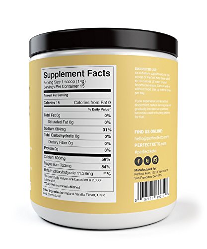 Studio : Perfect Keto Publisher : Perfect Keto Binding : Health and Beauty Product Description Perfect Keto is by far the most effective, best-tasting ketone supplement out there.? Unlike other ketone supplements, we source our exogenous ketones from the U.S. Our founder is a functional medicine clinician who developed our unique formula for maximum efficacy. We use absolutely ZERO fillers, gums or additives (unlike the competitors) in our product. Many of our customers have reported Perfect Keto raised their blood ketone levels 0.8-1.4 mmol, and that they feel a burst of energy and focus.? Doctor Recommended Don't just take our word for it. See what one of our customers had to say in his Amazon review: "I have been experimenting with Intermittent Fasting and Ketosis protocols for the last 15 months, and have not found a supplement as safe and effective as this one. Being a Doctor in the Health and Wellness industry I get a lot of questions about products and supplements and I am very skeptical about most and the claims that are associated with them, but not only is Perfect Keto Base delicious, affordable (compared to similar products on the market) and hand crafted with the highest quality ingredients, it is also incredibly effective." Ingredients nbspWe use only high-quality beta hydroxybutyrate (BHB) salts in Perfect Keto. Each serving comes with 11.3 grams of high-quality BHB. Each tub contains 211 grams of product, good enough for 15 full-scoop servings, or 30 half-scoop servings. Quick note (if you've not had exogenous ketones)? Exogenous ketones are not delicious. They are not meant to be delicious. In fact, when taken alone, they are horrendous. We engineered our products to deliver the many benefits of exogenous ketones without losing your lunch. However, many people will still find the product slightly bitter, or to have a strange aftertaste. 0 |