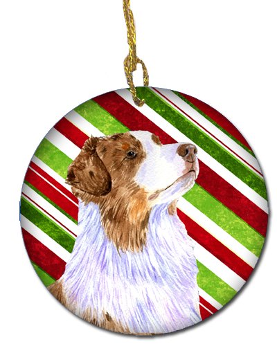 Caroline's Treasures LH9228-CO1 Australian Shepherd Candy Cane Holiday Christmas Ceramic Ornament, Multicolor