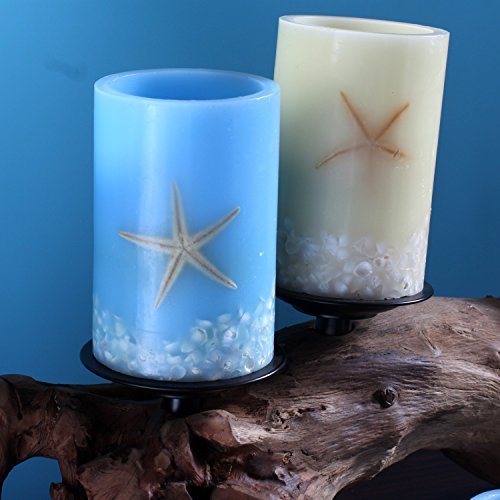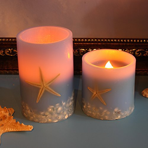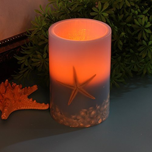 -. Brand : DFL INC. -. Feature : SPECIFICATIONS - -Candle size 4 Diam inches x 4 inches Height. Package of 1 . Candle runs on 2x D batteries (not included) . Made with real high quality wax ,shell and see star. -. Label : DFL -. Manufacturer : DFL -. ProductGroup : Lighting -. ProductTypeName : HOME_LIGHTING_AND_LAMPS -. Publisher : DFL -. Studio : DFL -. Title : Led candle flameless candle electronic candle lamp Home outdoor party decoration Seastar and Shell Flameless Led Pillar Candle with Timer,Battery Operated.